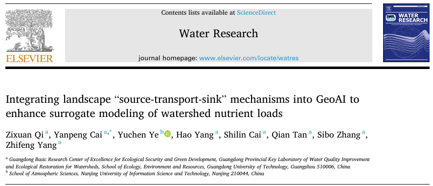 杨志峰院士团队蔡宴朋教授课题组在Water Research上发表题为“Integrating Landscape "Source-Transport-Sink" Mechanisms into GeoAI to Enhance Surrogate Modeling of Watershed Nutrient Loads”的研究论文。蔡宴朋教授为论文通讯作者,av影片中文