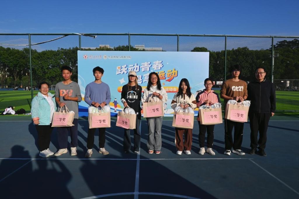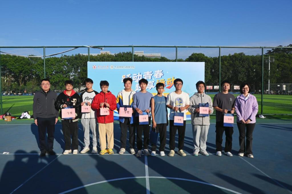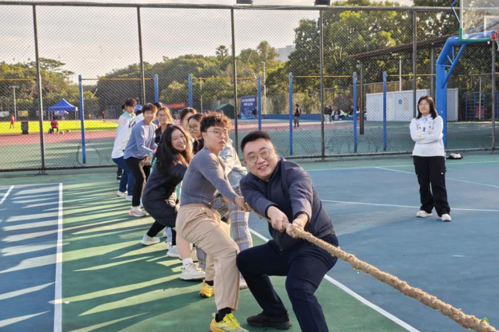 本次运动会项目丰富多样,既有定点投篮、一分钟跳绳等展现个人风采的项目,也有两人三足、定点投篮接力、夹气球和拔河等考验团队协作的趣味环节。赛场上师生同心、配合默契,尽情挥洒汗水;场边掌声、欢呼声不断,整个篮球场洋溢着青春的热情与活力。